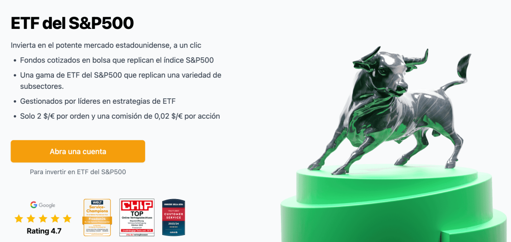 👉 Para invertir en el S&P 500, uno de los mejores ETF y con comisiones más bajas es el SPY, que lo puedes contratar aquí sin comisión de compra-venta o en este otro sitio. Invirtiendo aquí lo estarás haciendo en el mejor ETF del S&P 500.